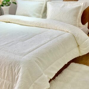 PARURE DE LIT EN COTON vert /blanc AVEC zigzag DE 4 PIÈCES