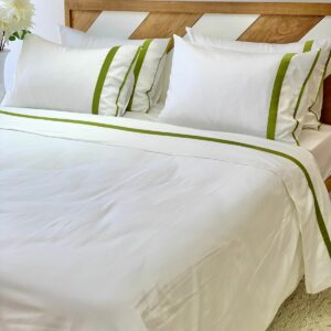 Parure de lit en satin de coton blanc/vert de 6 pièces