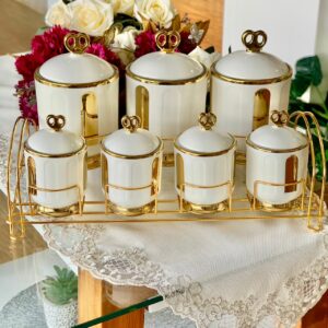 ensemble de 7 post à épices en porcelaine