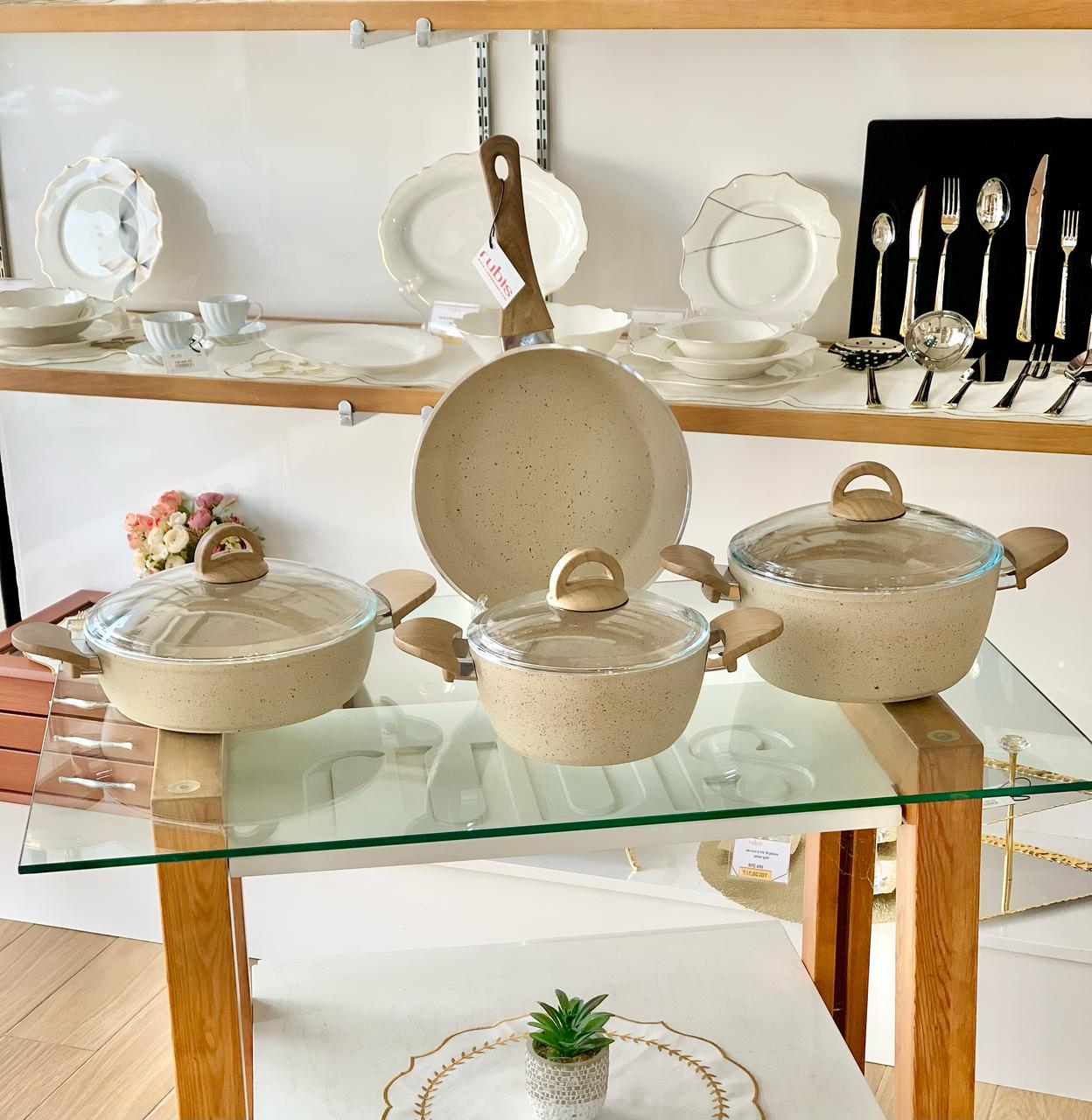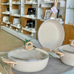 CONTENU DU PRODUIT Faitout de 20 cm de profondeur Faitout de 24 cm de profondeur Faitout bas 26cm Poêle de 26 cm