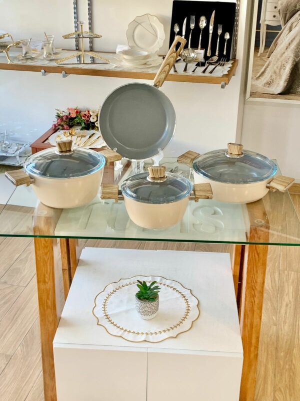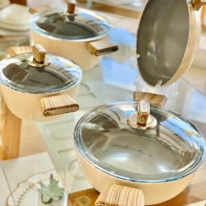 CONTENU DU PRODUIT Faitout de 20 cm de profondeur Faitout de 24 cm de profondeur Faitout bas 26cm Poêle de 26 cm
