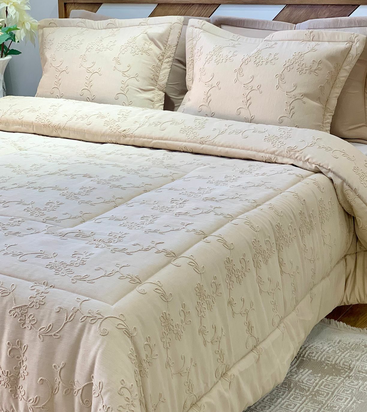 parure de lit en Jaccard beige de 5 pièces
