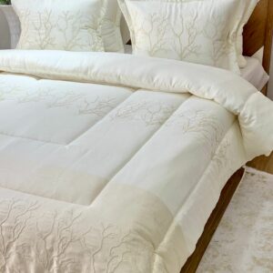 couvre lit de 8 pièces en lin brodée beige /feuille