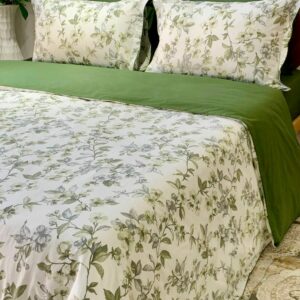 parure de lit avec billet fleuri vert 6 pièces en coton